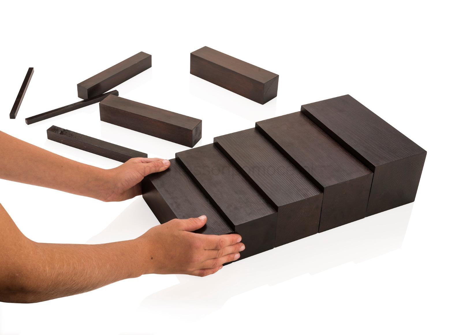 1 dodatkowy najmniejszy klocek (1 x 1 x 20 cm) jako zamiennik i do pomiaru Odległości między stopniami schodów